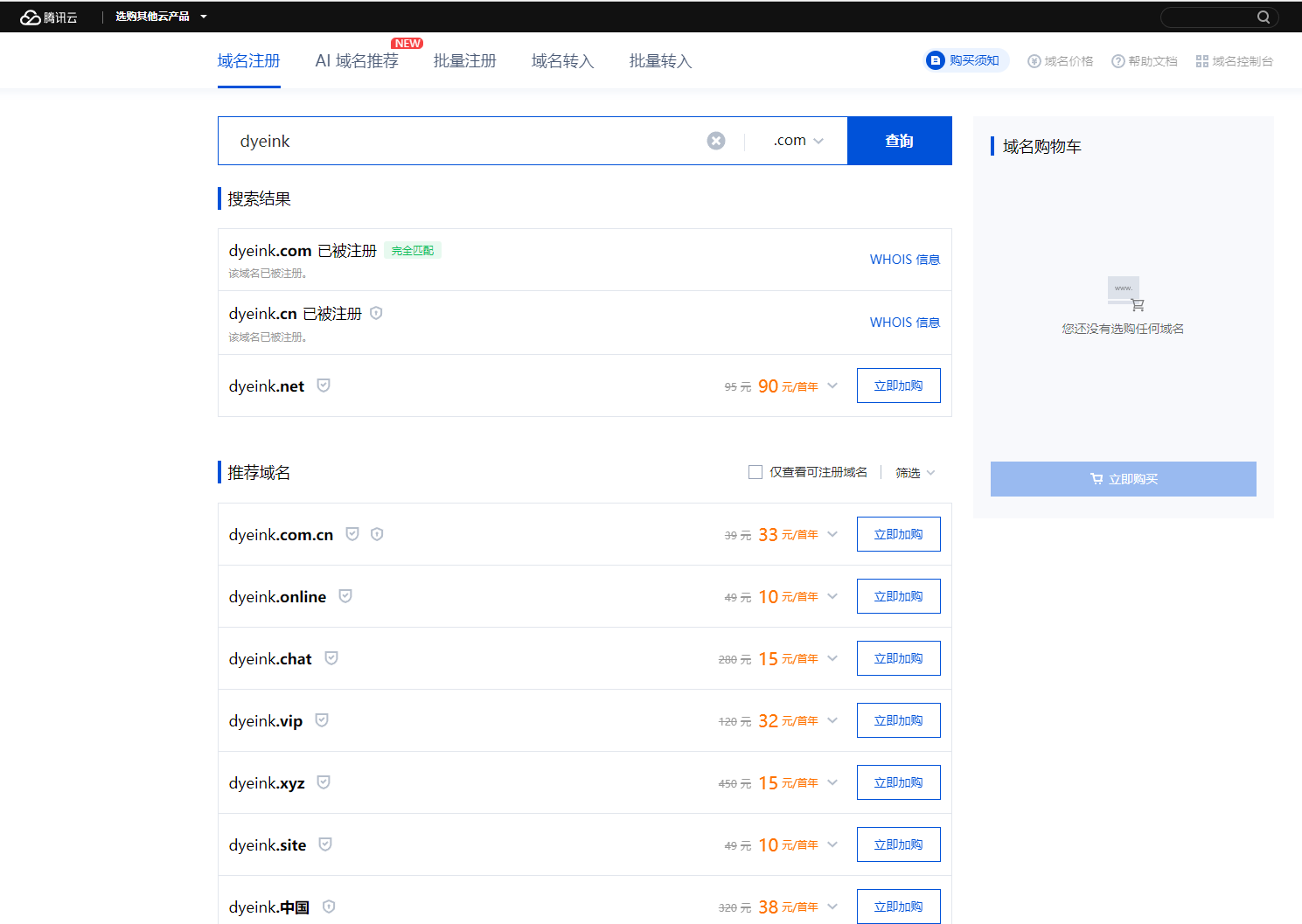 网址:域名_域名注册_域名购买_域名注册价格-腾讯云 (tencent.com)